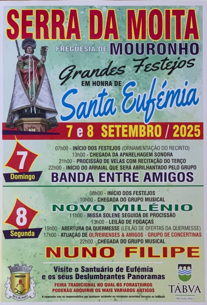 Este evento já decorreu. Santa Eufémia 7 Setembro @ 8:00 am – 8 Setembro @ 5:00 pm Adicionar ao calendário Calendário Google iCalendar Outlook 365 Outlook Live Siga-nos e Partilhe:
