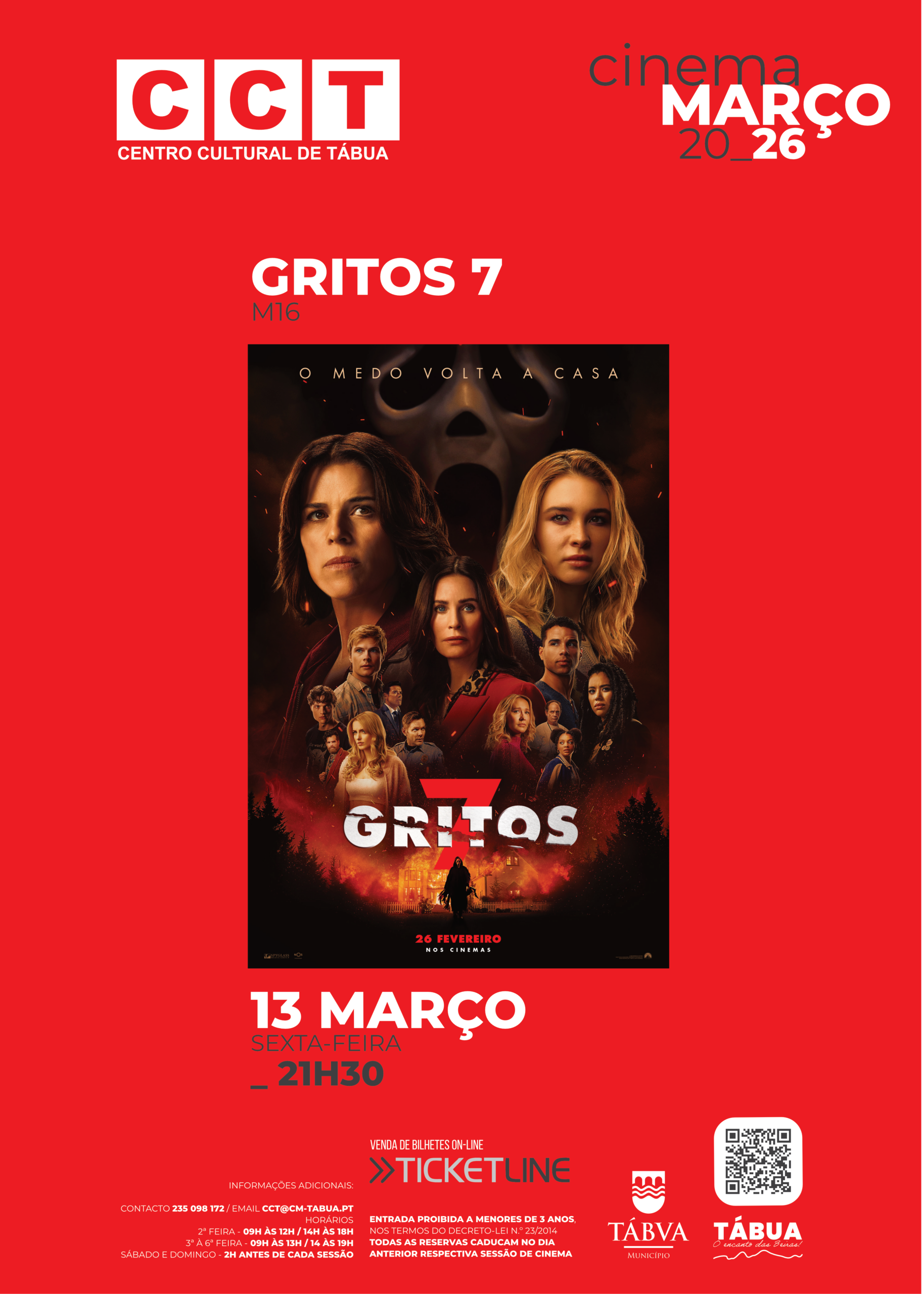 Centro Cultural de Tábua 40.36228874895877, -8.031595440298855, Tábua, Tábua, PortugalQuando surge um novo assassino Ghostface na pacata cidade onde Sidney Prescott (Neve Campbell) construiu uma nova vida, os seus piores pesadelos ganham vida e a sua filha (Isabel May) […]